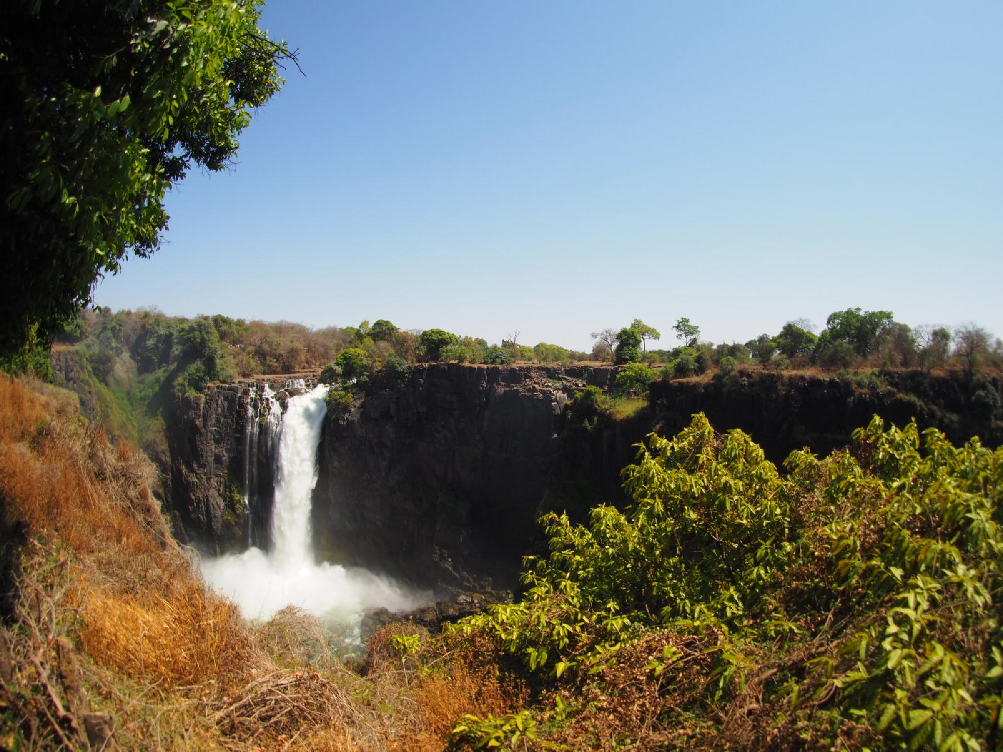 The falls are fed by the Zambezi River, which runs 2,660 km, starting in Angola and flowing through five countries. π